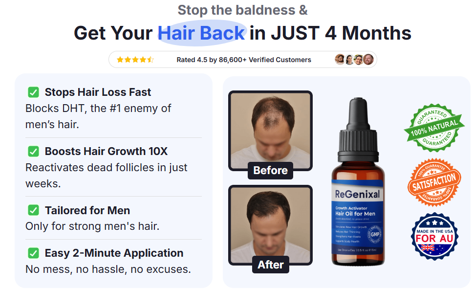 ReGenixal Hair Oil Australia is a balding treatment that aims to promote hair growth and combat male example sparseness. A cleanser, activator gel, and nutritional supplement make up this Regenixal Hair Regrowth non-remedy framework, which is designed to work together to address the root causes of baldness and stimulate the growth of solid hair.